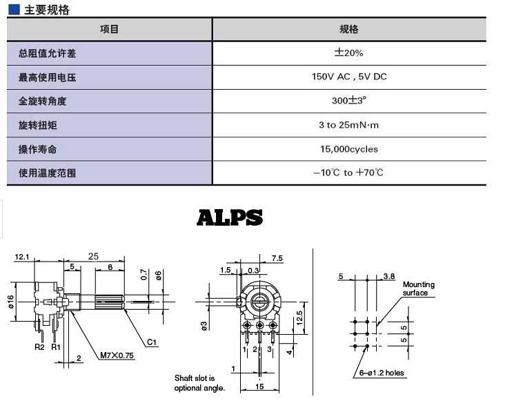 Your Position: Home > Accessories Kit > Volume Control > ALPS 16 Potentiometer 10K 20K 50K 100K 250K 500K (Stereo)